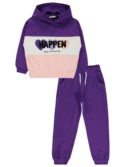 Civil girls happy vibes baskılı 6-9 yaş eşofman takımı - lila