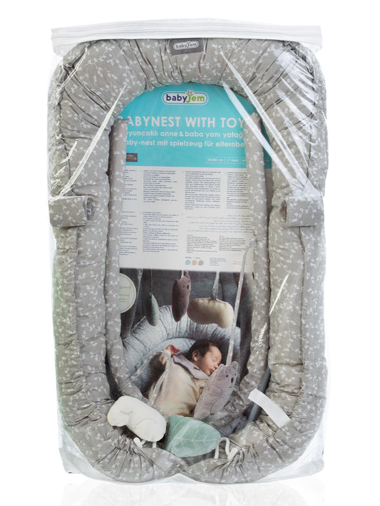 Babyjem oyuncaklı anne baba yanı yatağı - gri