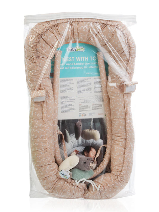 Babyjem oyuncaklı anne baba yanı yatağı - pudra