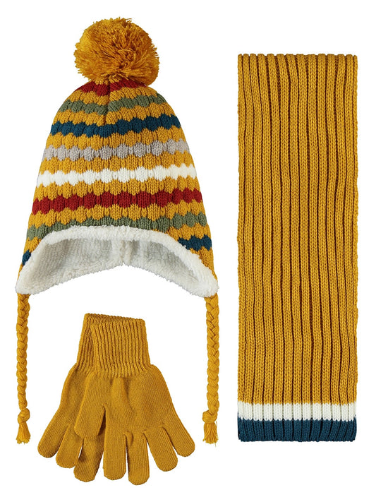 Civil boys 2-5 yaş atkı bere eldiven set - hardal