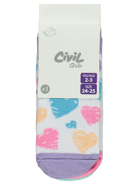 Civil girls kalp 3'lü 2-12 yaş kız soket çorap