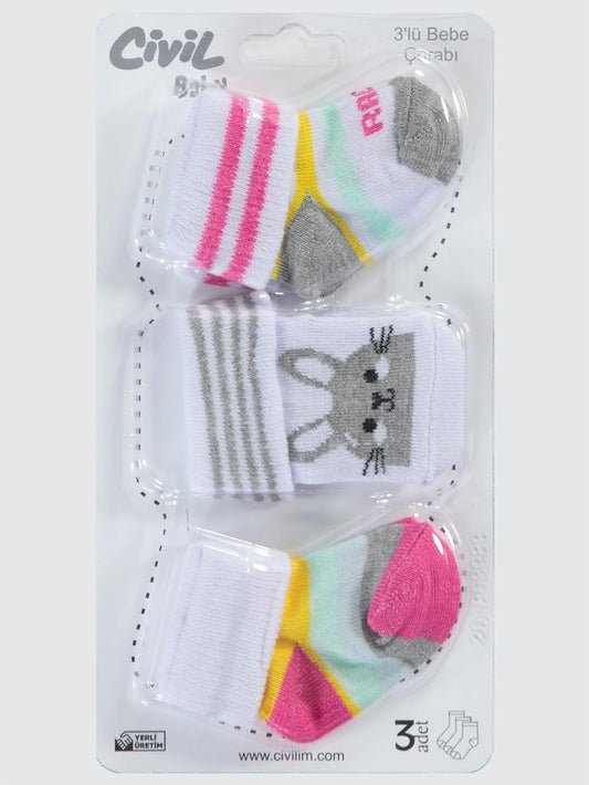 Civil baby rabbit desen asetat 0-24 ay çorap setleri