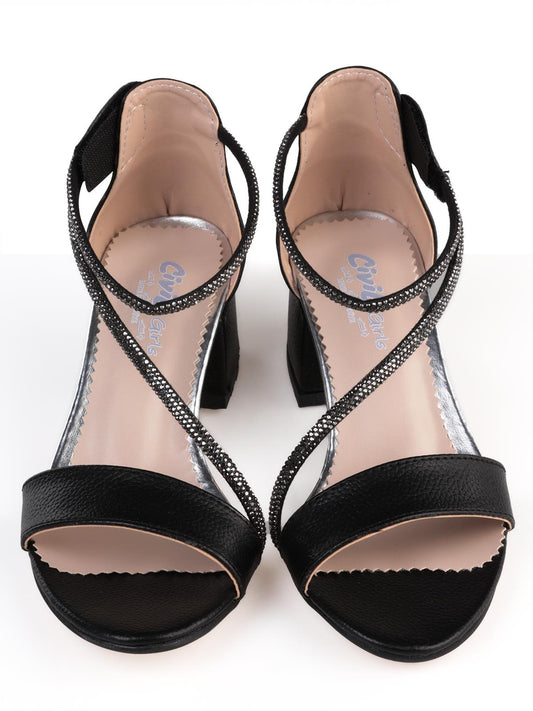 Civil girls taş akseaurlı 31-36 numara abiye ayakkabı - siyah