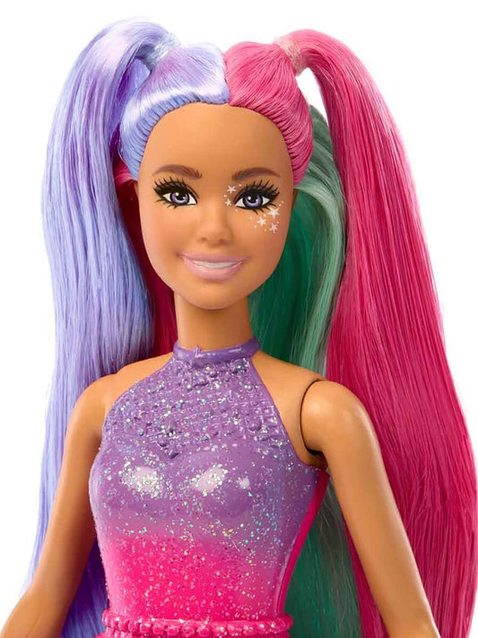 "Barbie® 'Brooklyn' Roberts Bebek ve 50'den fazla saç şekillendirme parçasının yer aldığı Barbie™ Brooklyn Eğlenceli Saçlar™ Oyun Seti ile gerçekçi...
