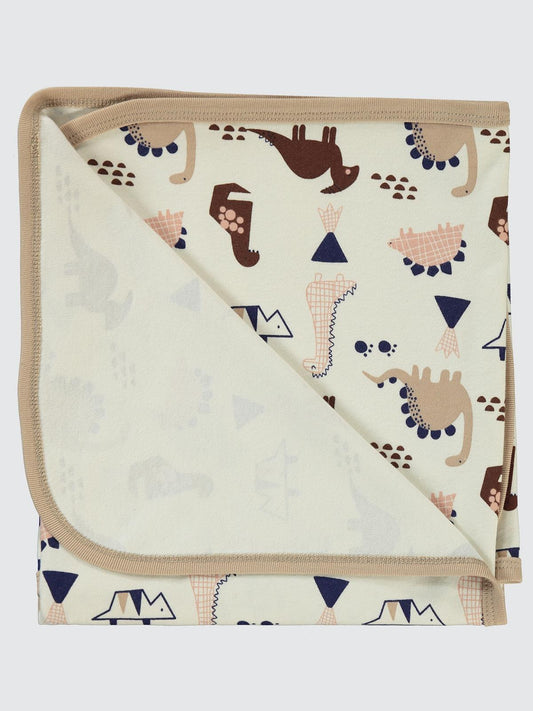 Civil baby çizgisel dino empirme battaniye - bej