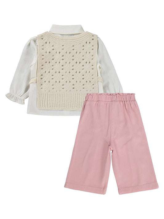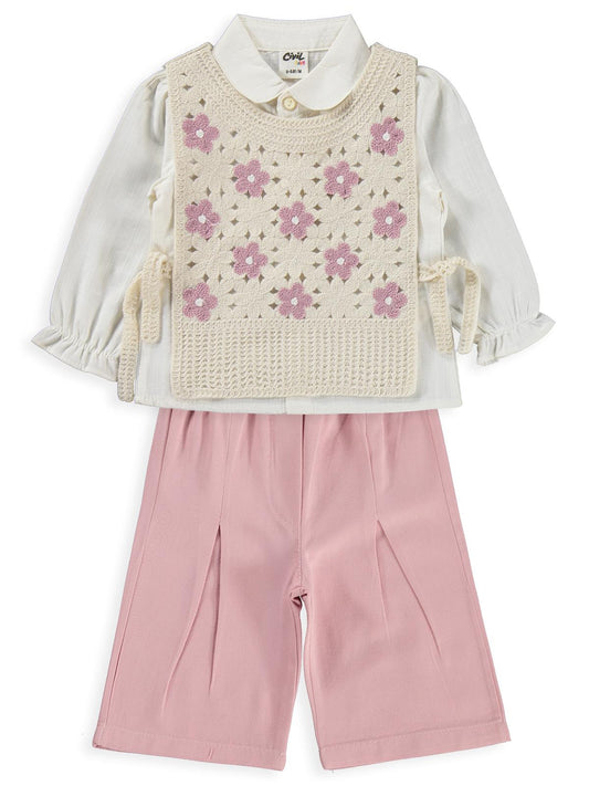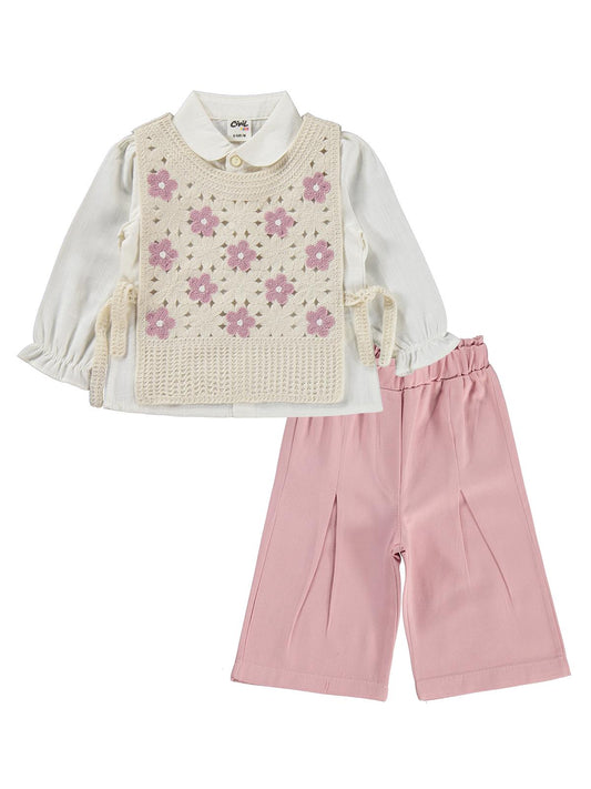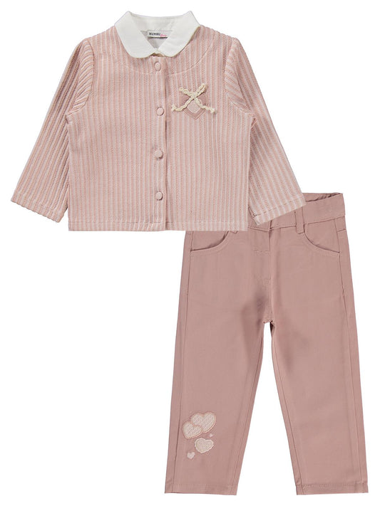 Civil girls pantolon ceket nakışlı 3 lü 2-5 yaş takım - pudra