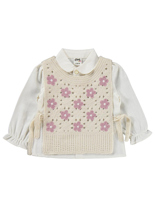 Civil baby çiçek nakışlı 6-18 ay takım - ekru