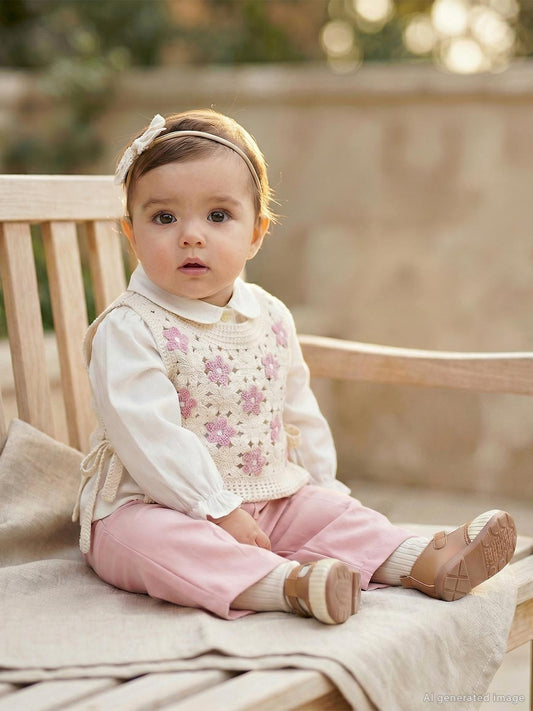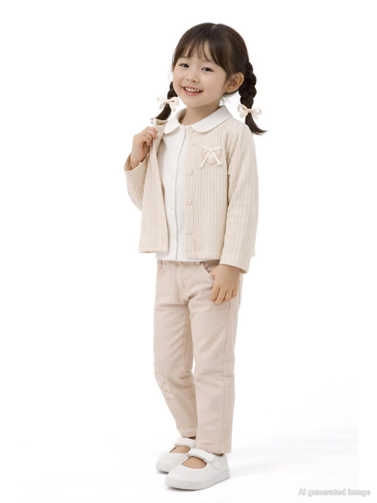 Civil girls pantolon ceket nakışlı 3 lü 2-5 yaş takım - bej