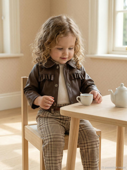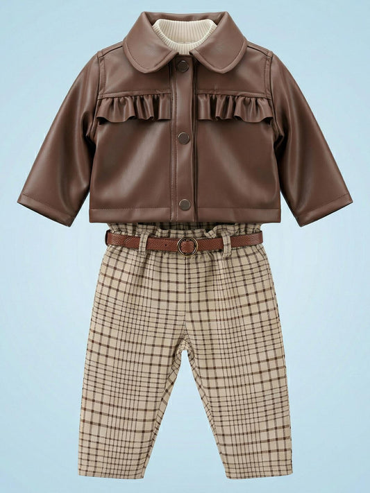 Civil baby deri roba fırfırlı 6-18 ay takım - kahverengi