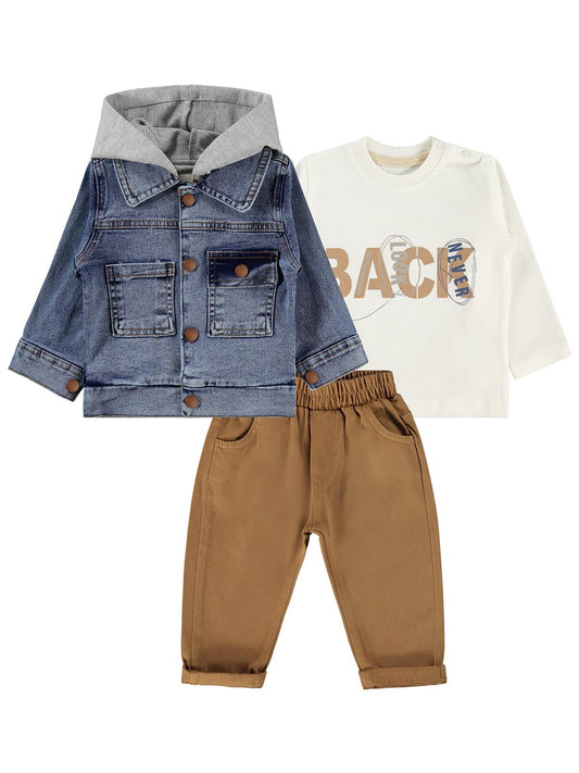 Concept kot kapşonlu ceketli 3'lü 6-18 ay takım - gri