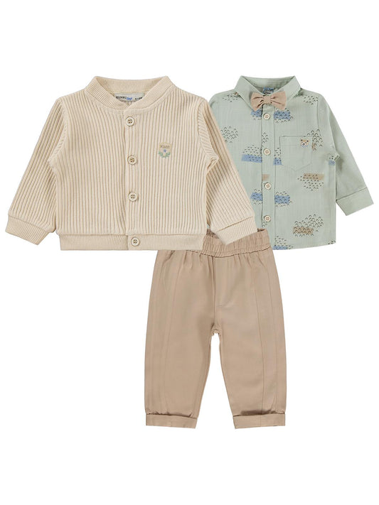 Kumru papyonlu hırka 3 lü 6-18 ay takım - yeşil