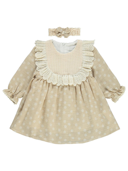 Lüks kumru roba fistolu bandanalı 6-18 ay elbise - bej