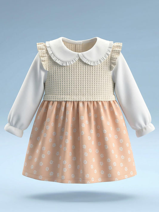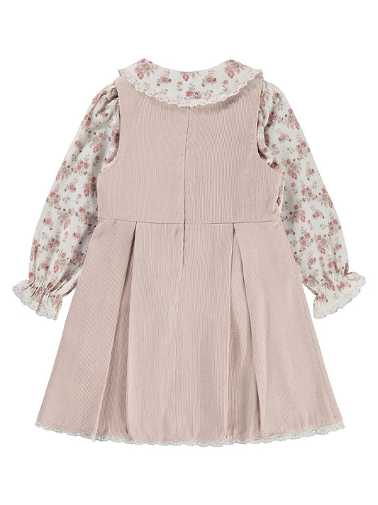 Civil girls çiçek gömlekli 2 li 2-5 yaş elbise - pudra