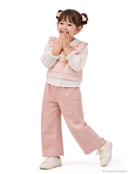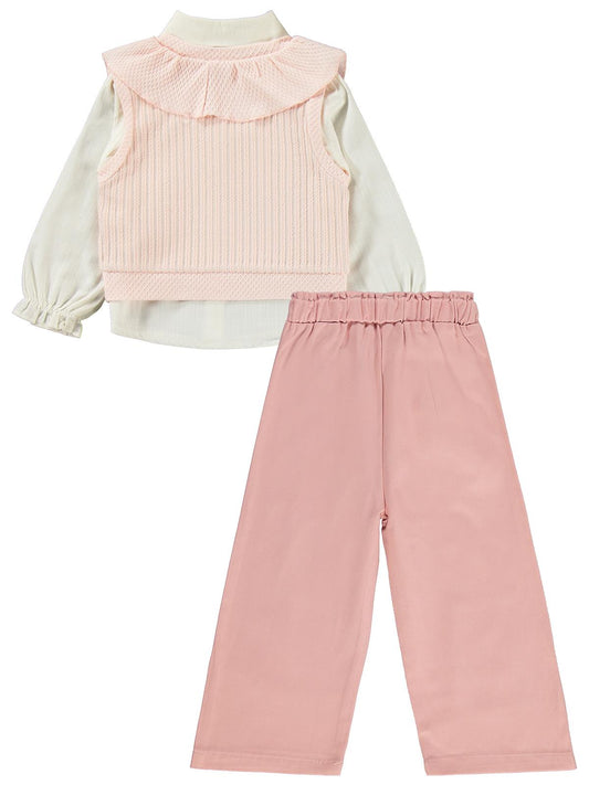 Civil girls v yaka süeter pantolon 3 lü 2-5 yaş takım - pembe
