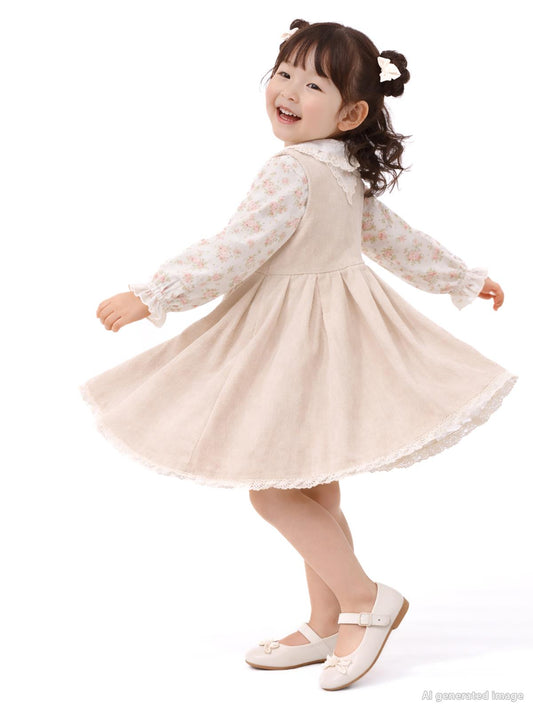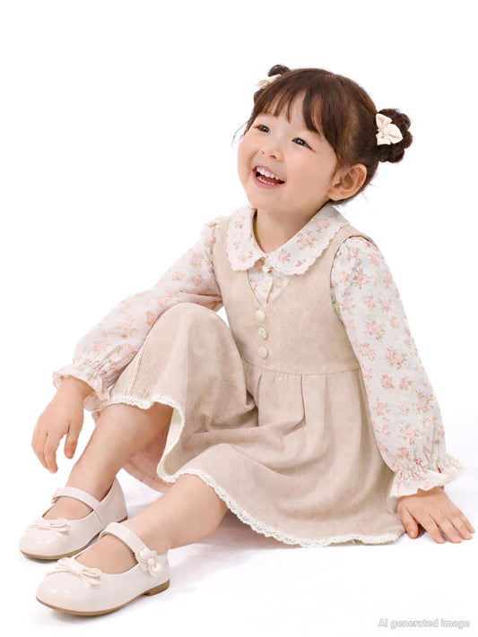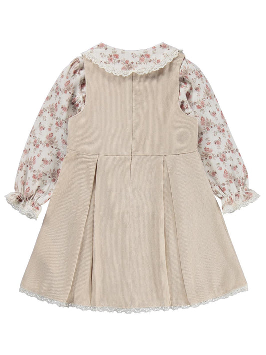 Civil girls çiçek gömlekli 2 li 2-5 yaş elbise - bej