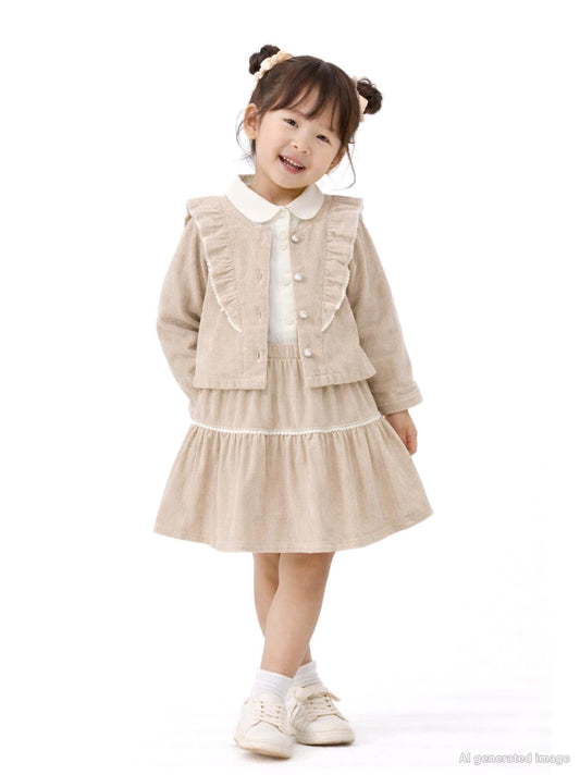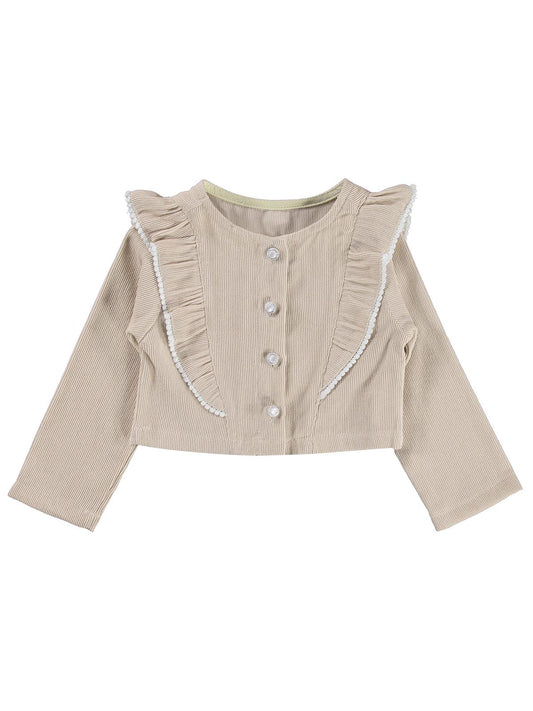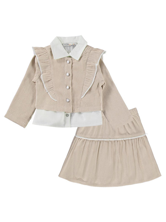 Civil girls fırfırlı ceket gömlek 3 lü 2-5 yaş takım - bej