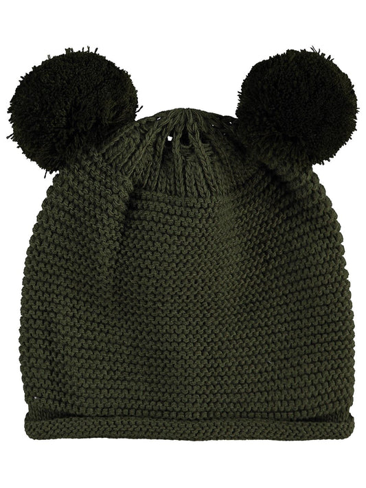 Civil baby çift ponponlu bebek erkek basic bere - yeşil