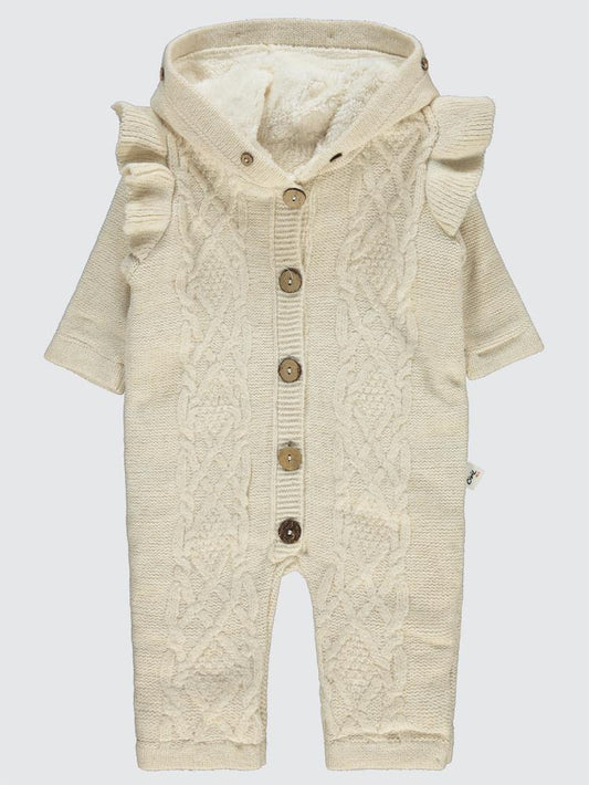 Civil baby kapüşon ve ponponlu 3-12 ay tulum - ekru