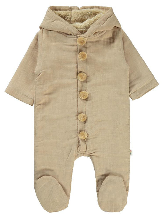 Civil baby kapüşon ve ponponlu 3-12 ay tulum - hardal