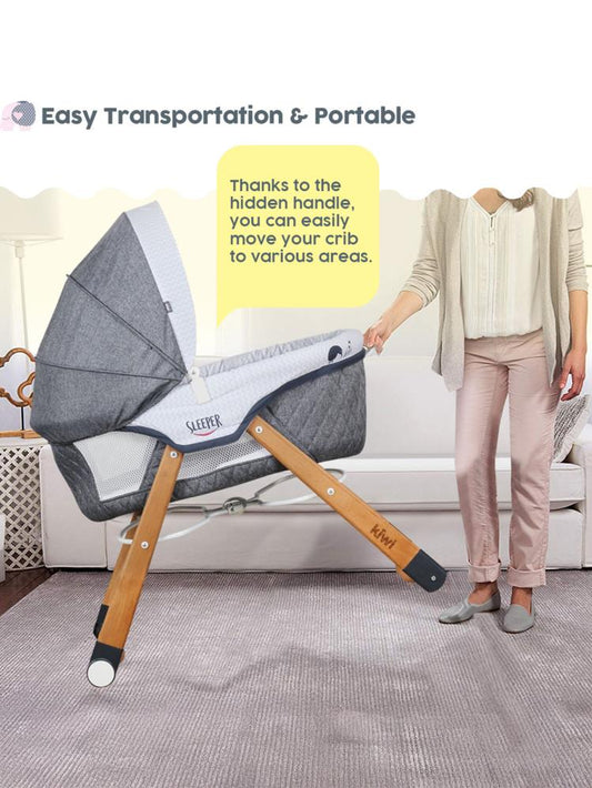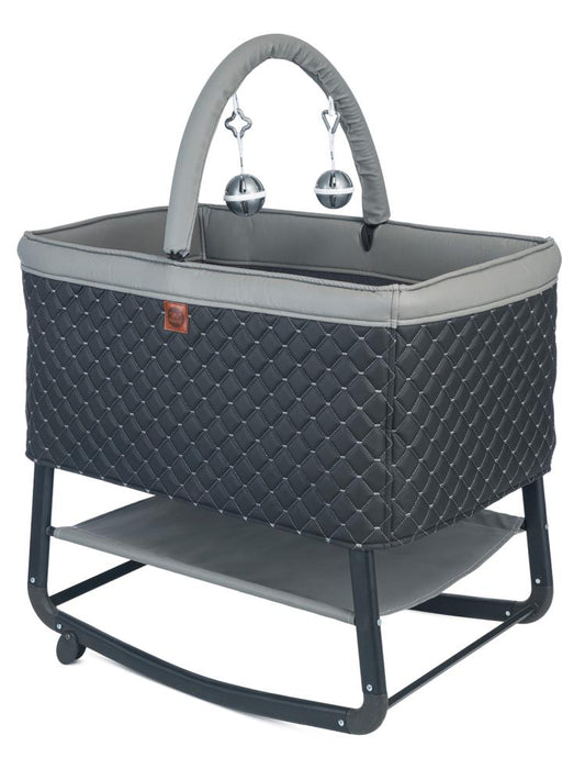 Kujju harmony deri kumaşlı mini anne yanı beşik - gri