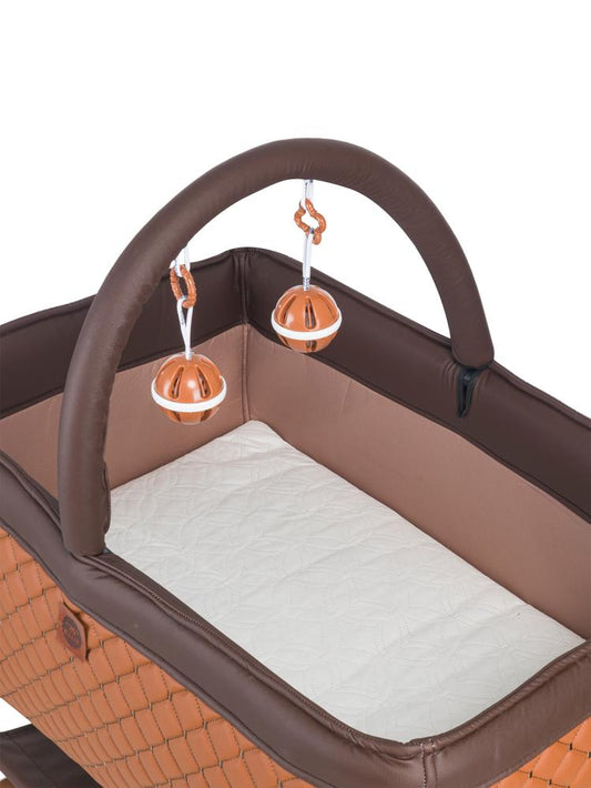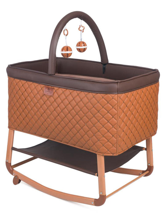 Kujju harmony deri kumaşlı mini anne yanı beşik - kahverengi