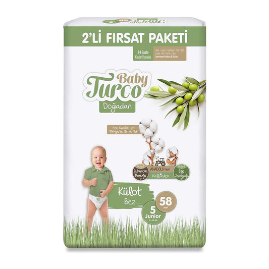 Baby turco doğadan fırsat paketi külot bez 5 junior numara 58 adet