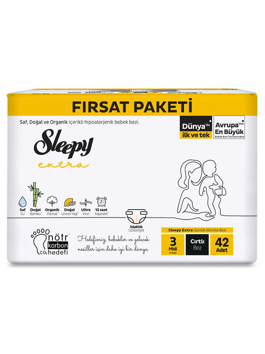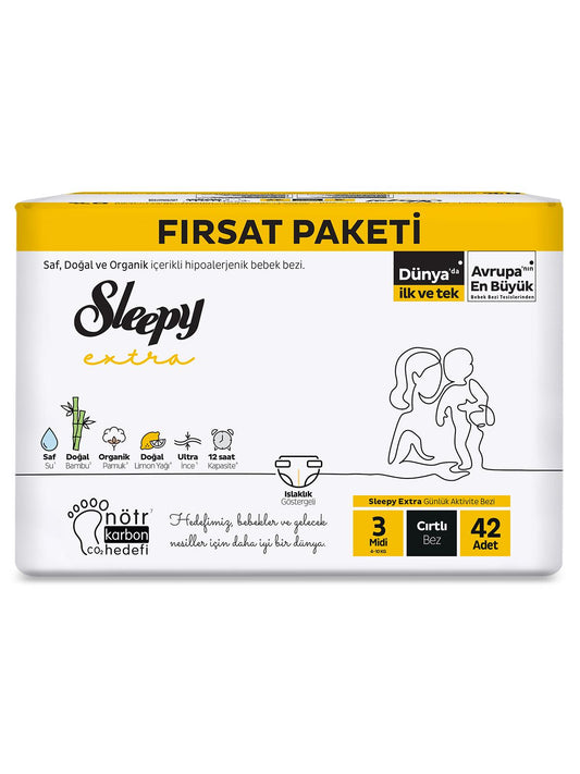 Sleepy extra günlük aktivite fırsat paketi bebek bezi 3 midi numara 42 adet