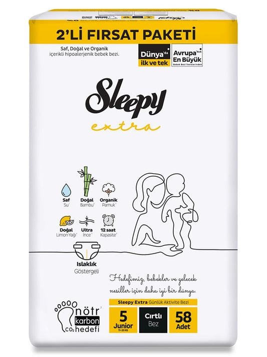 Sleepy extra günlük aktivite fırsat paketi bebek bezi 5 junior numara 58 adet