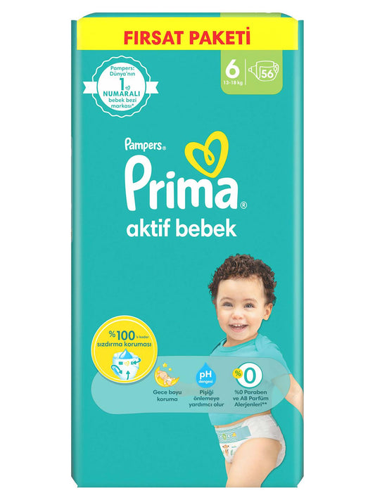 Prima aktif bebek bezi mega fırsat paketi 6 beden 56 adet