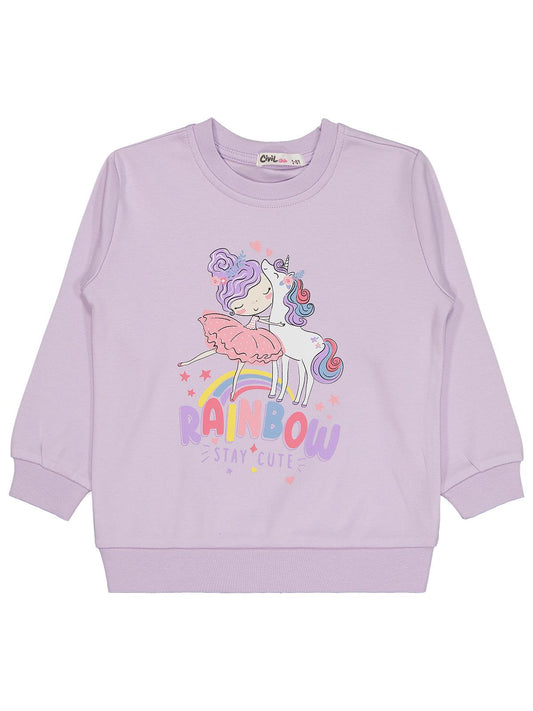Civil girls rainbow baskılı 2-5 yaş sweatshirt - lila
