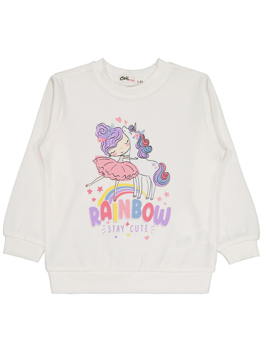 Civil girls rainbow baskılı 2-5 yaş sweatshirt - ekru