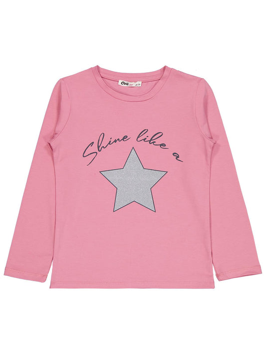 Civil girls yıldız baskılı 6-9 yaş sweatshirt - pembe