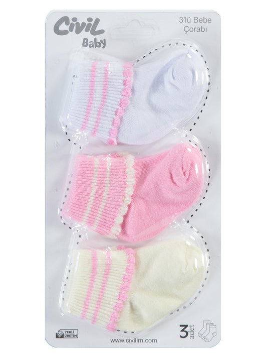 Civil baby kız bebek 3'lü çorap set 0-6 ay
