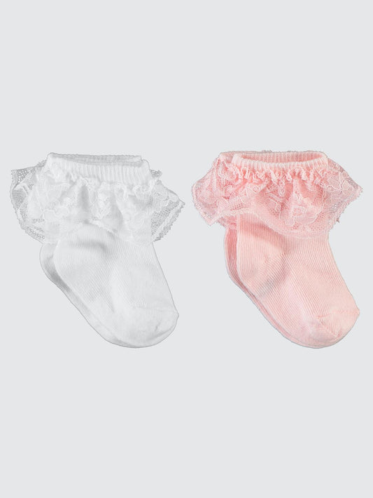 Civil baby kız bebek 2'li çorap set 6-18 ay - beyaz-pembe