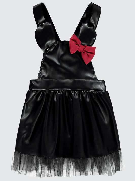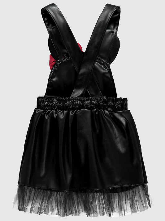 Civil baby deri kulaklı fiyonklu 9-18 ay elbise - siyah