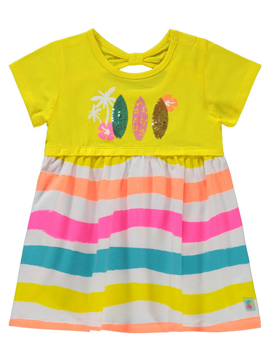 Civil baby dalga eskitme çizgi emp. baskı-nakışlı 6-18 ay elbise - sarı