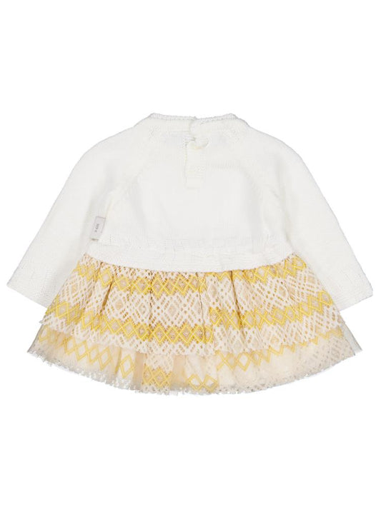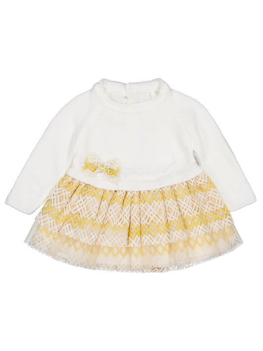 Civil baby yaka nakışlı fiyonklu 6-18 ay elbise - kahverengi