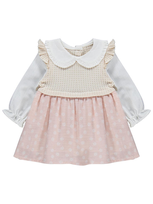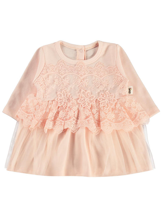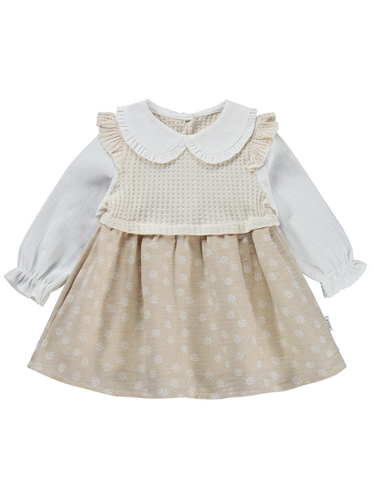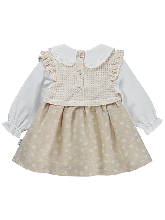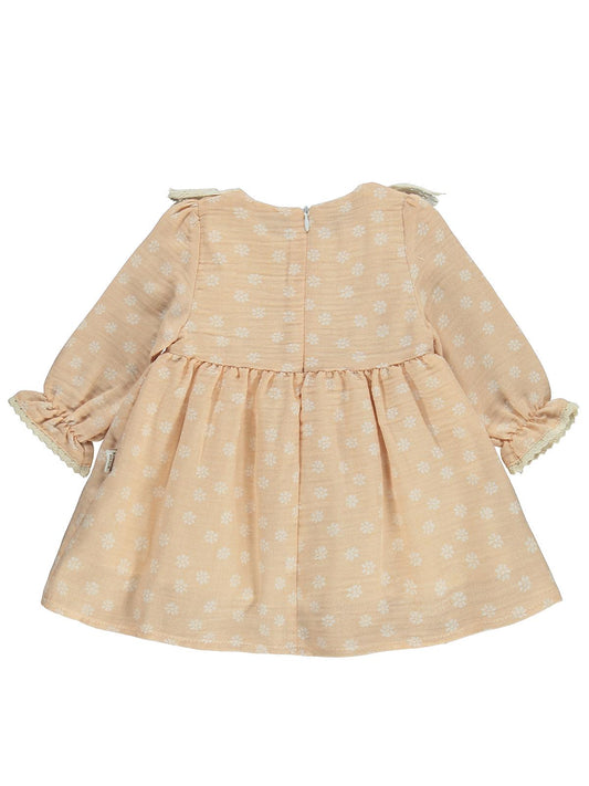 Cocoland dantel yaka süs düğmeli pileli 6-18 ay elbise - bej