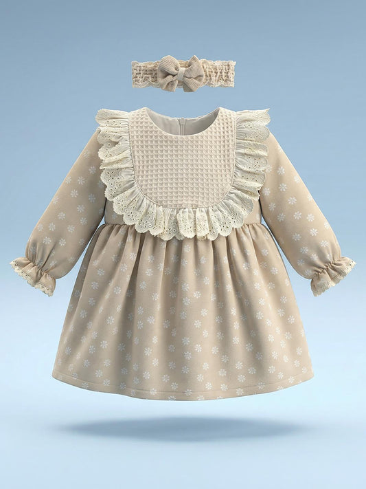 Civil baby dantel çiçek desenli 6-18 ay elbise - ekru