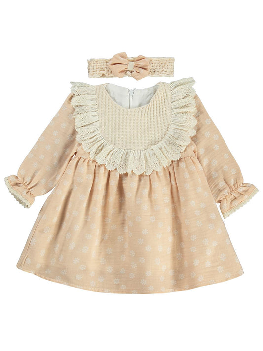 Lüks kumru roba fistolu bandanalı 6-18 ay elbise - bej