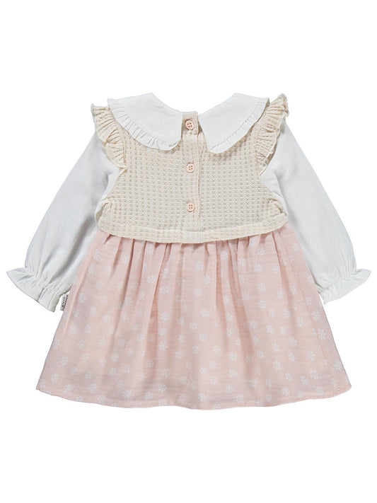 Civil baby çiçek baskılı düğmeli 6-18 ay elbise - pudra