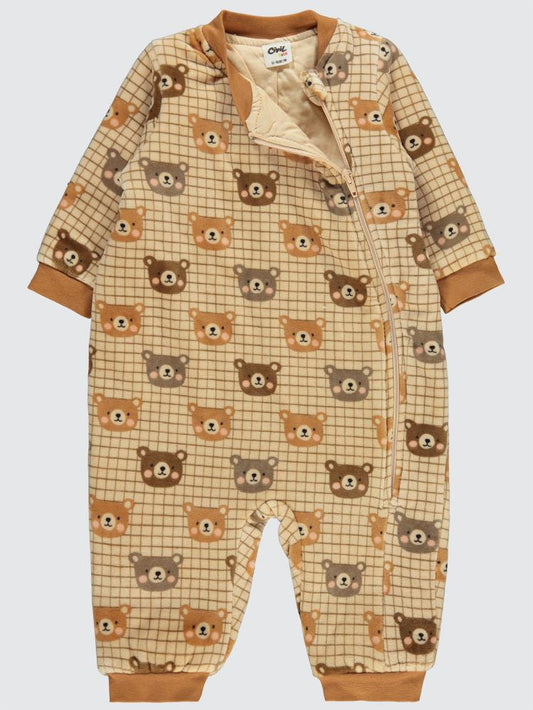 Civil baby kareli ayıcık empirme 12-18 ay uyku tulumu - kahverengi