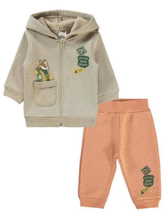 Civil baby hayvan baskılı 6-18 ay takım - bej