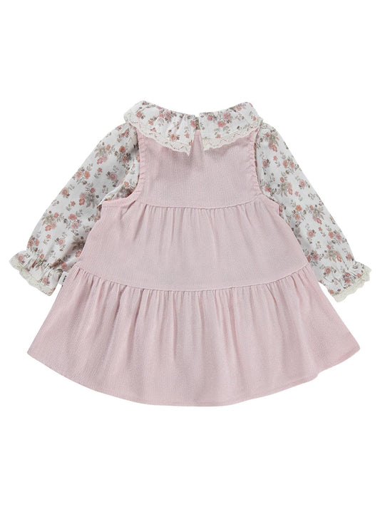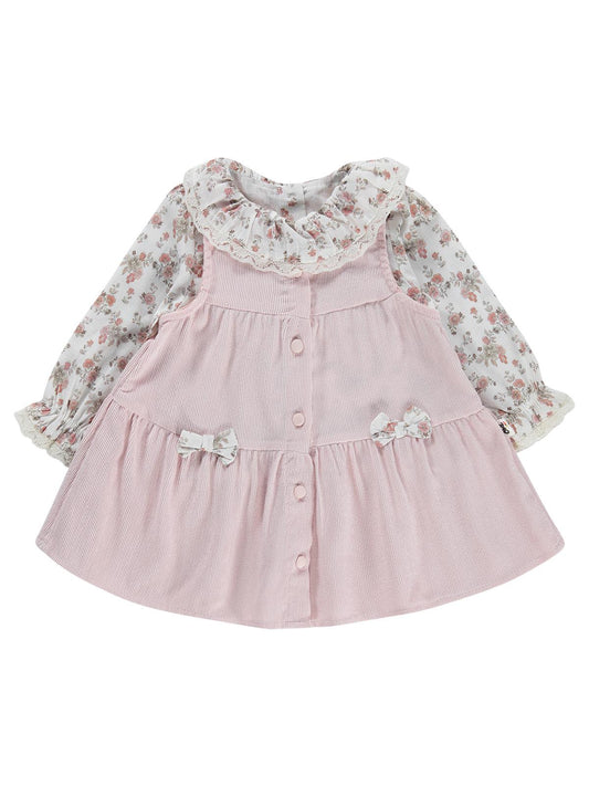 Civil baby çiçek baskılı düğmeli 6-18 ay elbise - pudra