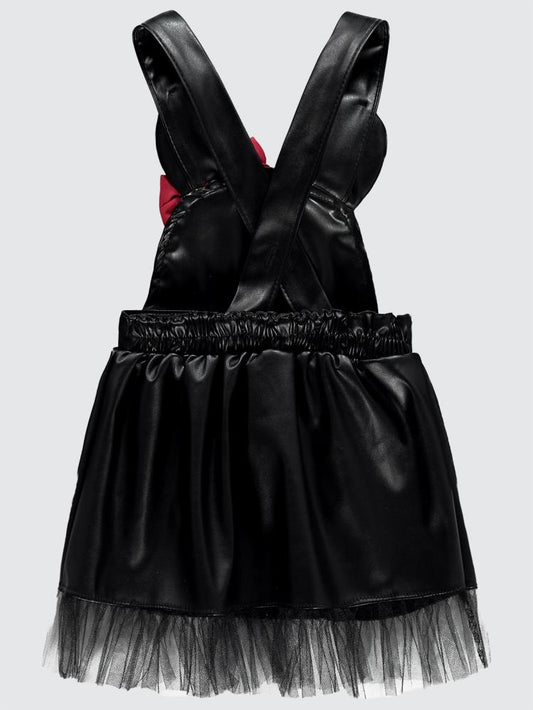 Civil baby deri kulaklı fiyonklu 9-18 ay elbise - siyah