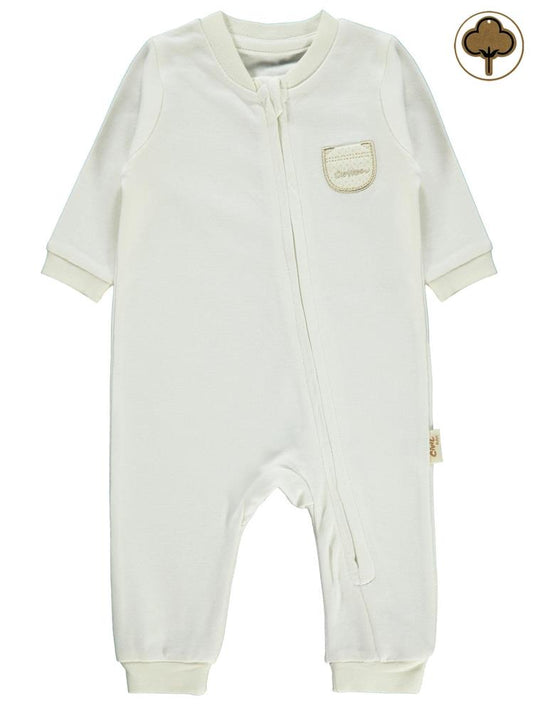 Civil baby organik pamuklu fermuarlı 0-6 ay tulum - ekru