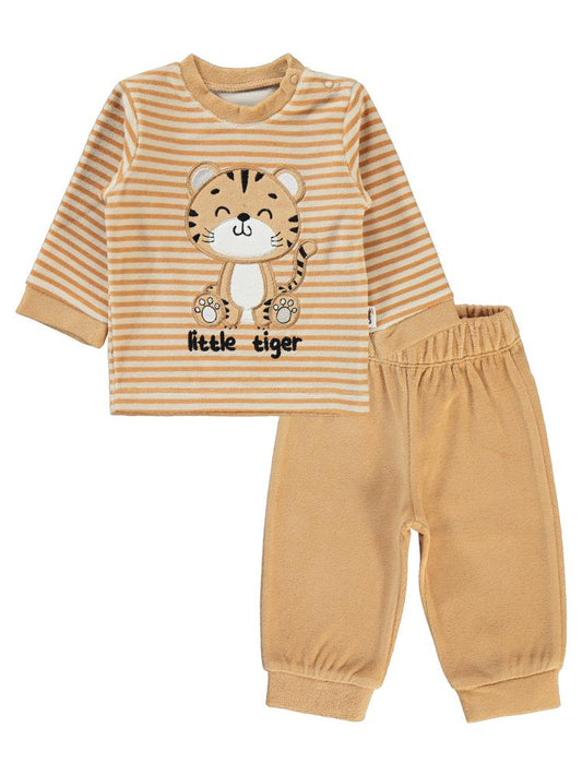 Civil baby çizgili baby tıger baskılı 6-18 ay takım - kahverengi