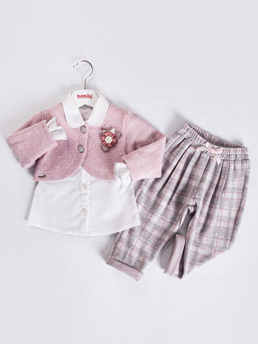 Bebüş çiçek nakışlı 12-36 ay takım - pembe