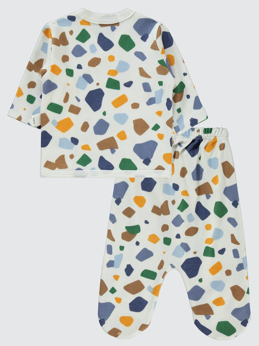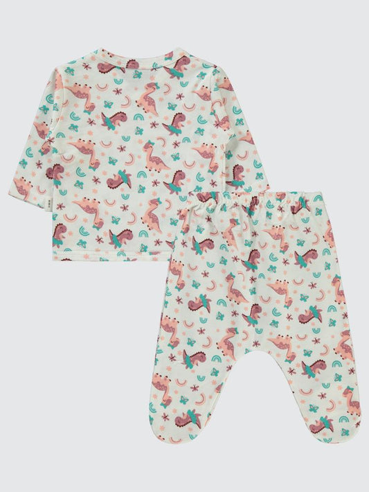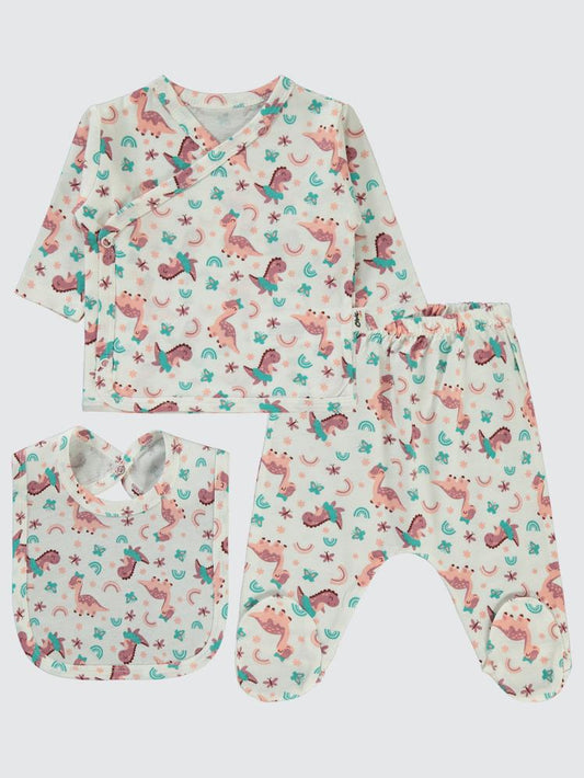 Civil baby dinazor baskılı 0-1 ay zıbın takımları - ekru
