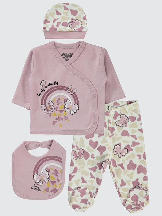 Civil baby butterfly baskılı 4'li zıbın takımları - lila